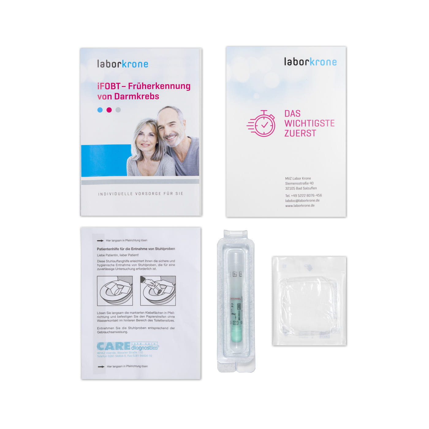 Bluttest (iFOBT), der gezielt menschliches Hämoglobin im Stuhl nachweist. Er bietet eine hohe Sensitivität für die Erkennung von Darmkrebs und dessen Vorstufen und ist einfacher in der Handhabung im Vergleich zu älteren Methoden.